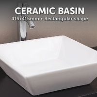 This attractive above-the counter basin is made from a ceramic construction. The basin is rectangular in shape and measures 415mm x 415mm x 120 mm.