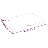 $90.24Are you planning to renovate your countertops at home? This wooden bathroom countertop is a perfect choice! Durable construction: This bathroom worktop is made of solid oak wood, which is a beautiful natural material. Oak wood has a medium brown colour and a dense grain, contributing to its unique look.Versatile applications: Besides a bathroom vanity top, this wooden countertop can be combined with different bases according to your needs. It can be used as a shelf, cabinet top, desk top, table top etc.Treated surface: The bathroom top has been treated with dark paint, so it is ready for use as an additional finish is not required.Handmade with live edge: This bathroom vanity countertop is handmade with a live edge. Due to that the knots, cracks, slightly curved shapes, and colour tones are part of the oak wood, every piece of oak countertop has its own unique character to display. The delivery is random. Good to know:As a natural product, wood may show knots and imperfections that we fill with black fillings to ensure a smooth appearance.