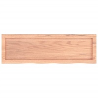NOW $110.66Are you planning to renovate your countertops at home? This wooden bathroom countertop is a perfect choice! Durable construction: This bathroom worktop is made of solid oak wood, which is a beautiful natural material. Oak wood has a medium brown colour and a dense grain, contributing to its unique look.Versatile applications: Besides a bathroom vanity top, this wooden countertop can be combined with different bases according to your needs. It can be used as a shelf, cabinet top, desk top, table top etc.Treated surface: The bathroom top has been varnished so it is ready for use as an additional finish is not required.Handmade with live edge: This bathroom vanity countertop is handmade with a live edge. Due to that the knots, cracks, slightly curved shapes, and colour tones are part of the oak wood, every piece of oak countertop has its own unique character to display. The delivery is random. Good to know:As a natural product, wood may show knots and imperfections that we fill with black fillings to ensure a smooth appearance.