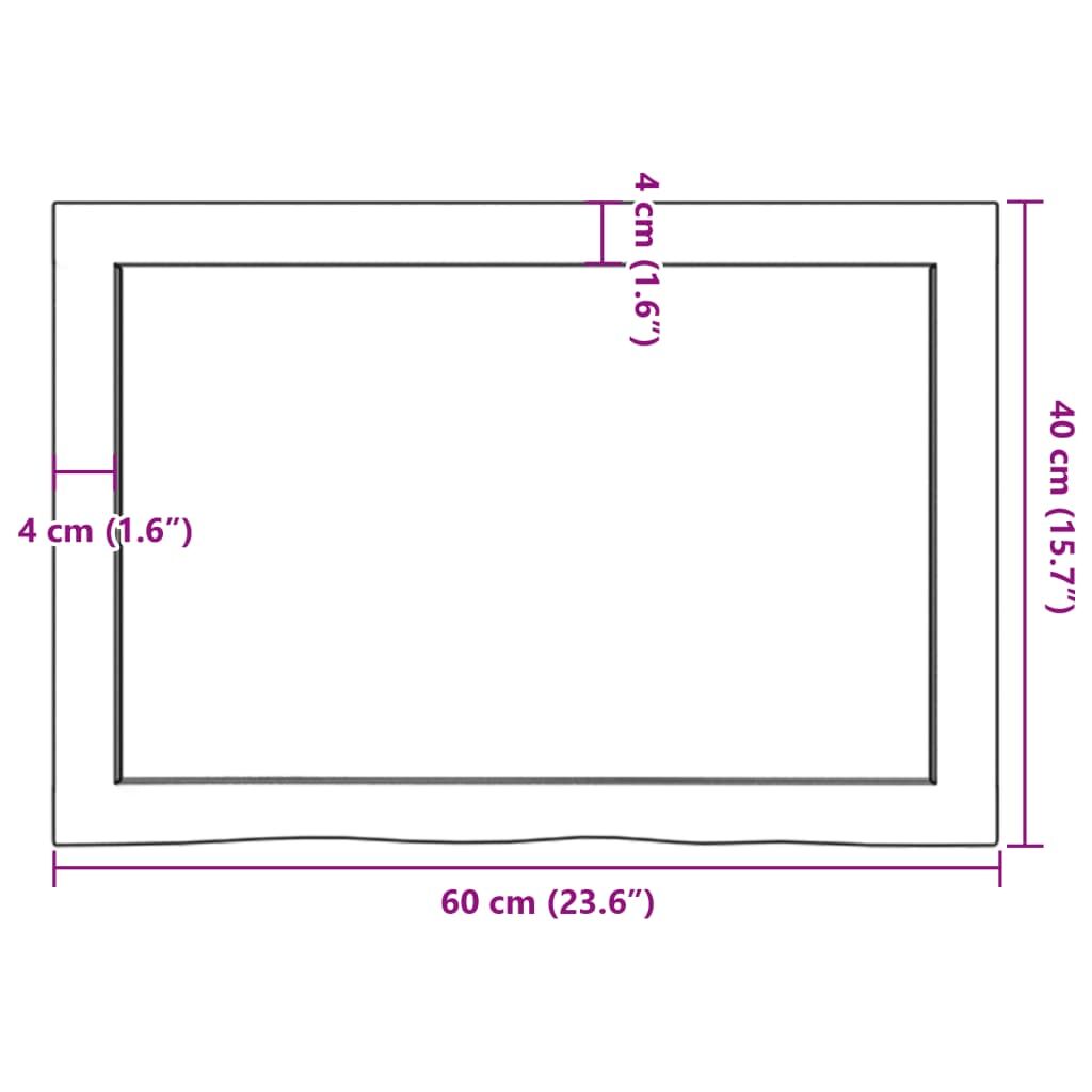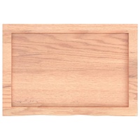 Are you planning to renovate your countertops at home? This wooden bathroom countertop is a perfect choice! Durable construction: This bathroom worktop is made of solid oak wood, which is a beautiful natural material. Oak wood has a medium brown colour and a dense grain, contributing to its unique look.Versatile applications: Besides a bathroom vanity top, this wooden countertop can be combined with different bases according to your needs. It can be used as a shelf, cabinet top, desk top, table top etc.Treated surface: The bathroom top has been varnished so it is ready for use as an additional finish is not required.Handmade with live edge: This bathroom vanity countertop is handmade with a live edge. Due to that the knots, cracks, slightly curved shapes, and colour tones are part of the oak wood, every piece of oak countertop has its own unique character to display. The delivery is random. Good to know:As a natural product, wood may show knots and imperfections that we fill with black fillings to ensure a smooth appearance.