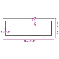 $75.99Are you planning to renovate your countertops at home? This wooden bathroom countertop is a perfect choice! Durable construction: This bathroom worktop is made of solid oak wood, which is a beautiful natural material. Oak wood has a medium brown colour and a dense grain, contributing to its unique look.Versatile applications: Besides a bathroom vanity top, this wooden countertop can be combined with different bases according to your needs. It can be used as a shelf, cabinet top, desk top, table top etc.Treated surface: The bathroom top has been varnished so it is ready for use as an additional finish is not required.Handmade with live edge: This bathroom vanity countertop is handmade with a live edge. Due to that the knots, cracks, slightly curved shapes, and colour tones are part of the oak wood, every piece of oak countertop has its own unique character to display. The delivery is random. Good to know:As a natural product, wood may show knots and imperfections that we fill with black fillings to ensure a smooth appearance.