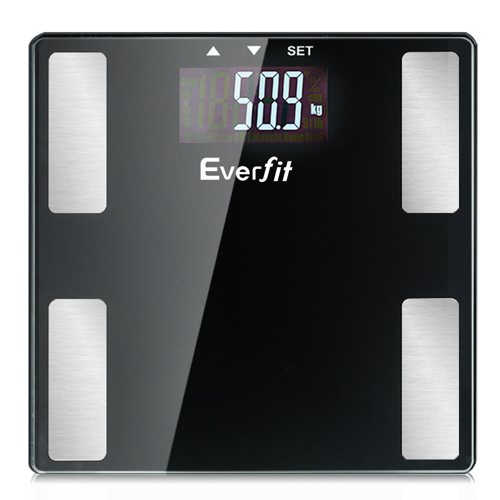 Measuring your weight and other health parameters has just become easier with Everfit Body Fat Scale. Equipped with a high-precision sensor system, the body fat scale measures up to seven parameters such as weight, water, body fat, bone, calories, BMI and muscle contents. The measurement range handles up to 180kg or 400lbs in accurate 0.1kg/0.2lbs scale division. The scale also has a durable 6mm tempered glass platform. To use the scale, just set up your personal data, select your profile and step onto the scale. The scale will display the results on the large LCD display after each weigh-in and you can store profiles of up to twelve users. With other great features such as low power/overload indication and auto on/off, the Everfit Body Fat Scale makes keeping track of your health fast and easy.
