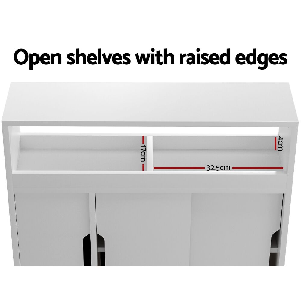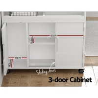 Keep your bathroom organised with an Artiss Bathroom Storage Cabinet. This neat and tidy storage solution is made from durable particleboard for long-lasting use. A combination of three cabinets and two open shelves with raised edges gives you plenty of storage for your bathroom essentials. The cabinets feature a combination of swinging and sliding doors with curved handles for ease of use. Four smooth castor wheels mean you can place it anywhere in your bathroom with ease. Easy to install and easy to clean, the Artiss Bathroom Storage Cabinet is just what your bathroom needs to stay tidy.