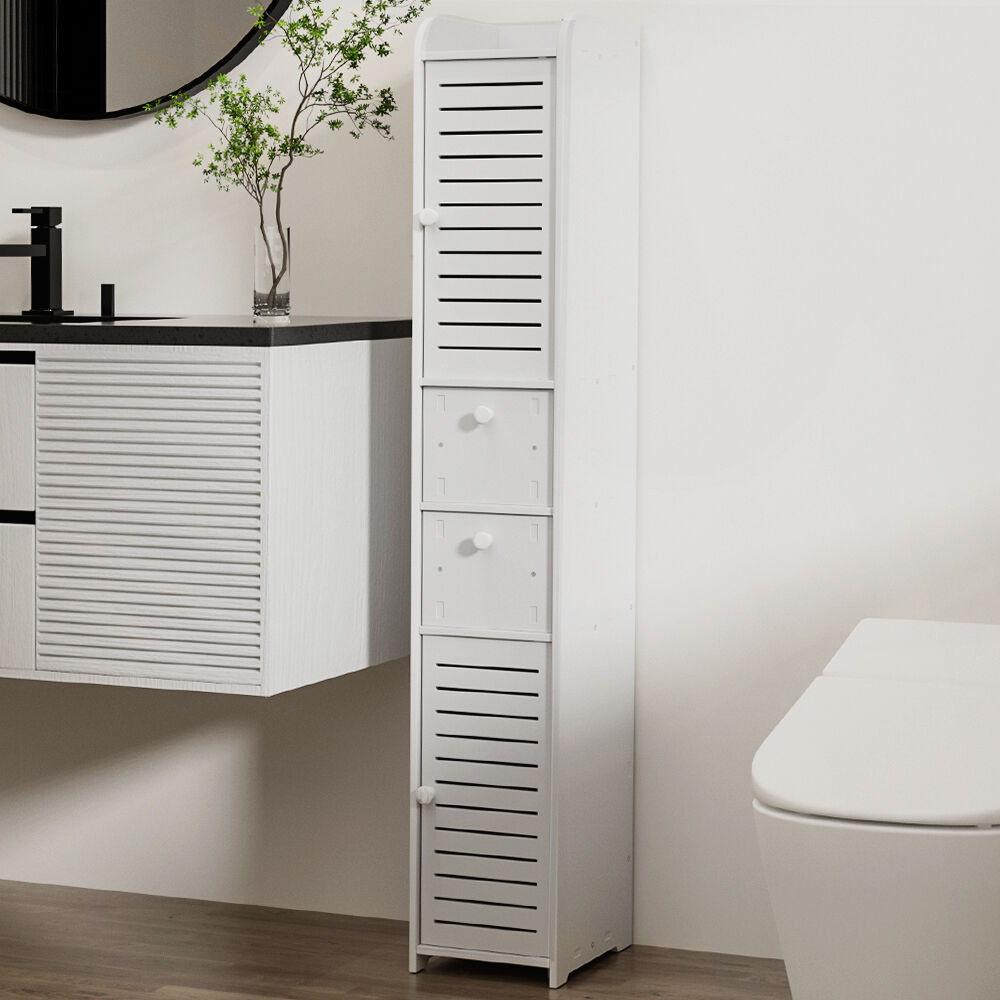 $75.04Keep your bathroom organised with an Artiss Bathroom Storage Cabinet. This neat and tidy storage solution is made from durable, water-resistant materials. Two generous drawers, two ventilated storage cabinets and an open tabletop with round edges give you plenty of room for your bathroom essentials. Smooth silver handles help you pull out the drawers with ease. The louvred cabinet doors allow for proper airflow throughout the shelves. The space-saving design means you can place it anywhere in your bathroom with ease. Easy to install and easy to clean, the Artiss Bathroom Storage Cabinet is just what your bathroom needs to stay tidy.