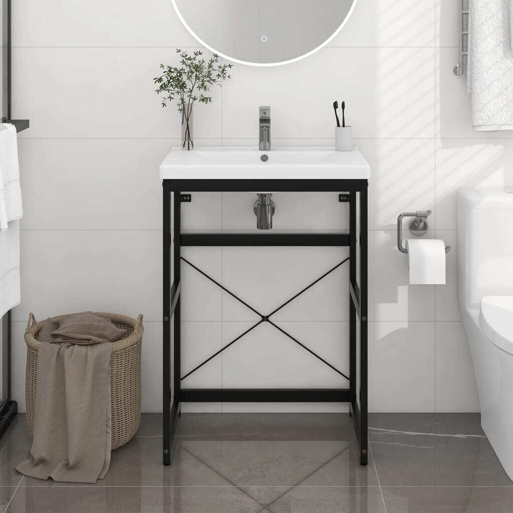 This bathroom washbasin frame is a perfect match for your bathroom with a clean, tidy appearance. Made of powder-coated iron, this wash stand is weather-resistant and durable. The washbasin frame gives easy access to towels and baskets and creates a more ample space than closed storage. The bathroom console frame is easy to clean with a damp cloth.