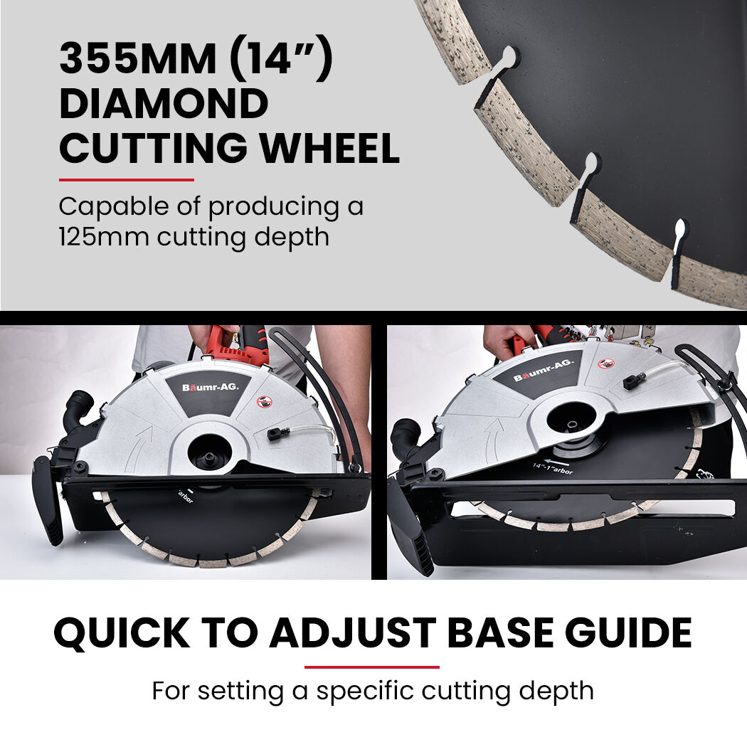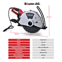 NOW $605.38The Baumr-AG CSE-75 Electric Concrete Saw is loaded with enough grunt to power through just about anything - including driveways, brick, asphalt, stone, tiles, stone work and pavers. With 2400 watts of power on tap and the convenience of a 10 amp plug this powerful yet portable machine is the essential tool for your building site. No more mixing of fuels, excessive fumes and cold starting hassles you can just push the start button and start doing steady cuts through high density materials!