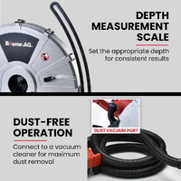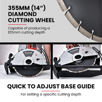 With a measurement gauge you can preset the depth of the 355mm diamond cutting blade to achieve consistent cuts right down to 125mm. Just a few adjustments also allow for horizontal cutting. The CSE-75 is equipped with a Dual Direct Water Feed that coats both sides of the blade for effective cutting, optimal blade life and reducing harmful dust and RCS.