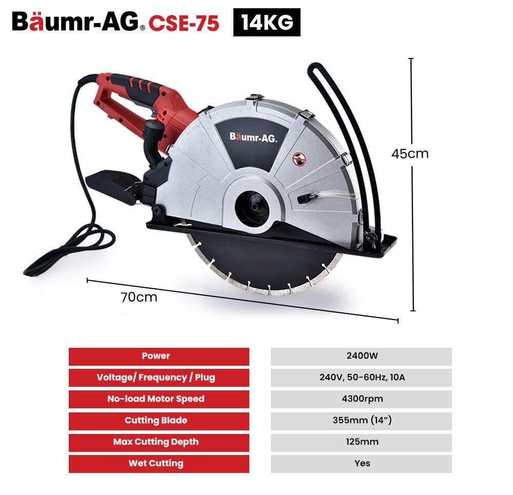 Everything you need comes complete, so youll be ready to knock over the job using the benchmark of dependable, powerful and sensibly priced equipment! Order a Baumr-AG CSE-75 Electric Concrete Circular Saw and experience the difference.