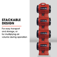 Designed with portability in mind, the compact Baumr-AG Air Blower has a carry handle and only weighs in at 13kg. It can conveniently be stacked up to 4 high for easy storage or transport, or to multiply air volume.