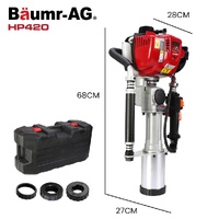 $640.76Introducing the New Baumr-AG HP420 38cc Four-Stroke Post driver. This is the perfect machine for driving fence posts, star pickets, tent stakes, and other similar objects into the ground. The powerful 8500 RPM Overhead Cam Engine delivers a powerful blow, in a lightweight efficient package. Transferring 35J at impact up to 2300 times a minute, youll make quick work of the job at hand.