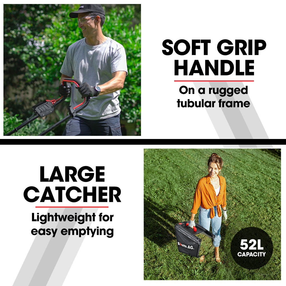 Baumr-AG continues to deliver innovative gardening tools with this addition to the cordless SYNC range – the 17” 40V Brushless 500CX Lawn Mower. With its powerful advanced brushless motor it slices through tough grass with ease! Being a cordless electric mower it starts humming in an instant via the child safe starting system, and there’s no messing about with fuel, fumes or maintenance hassles.