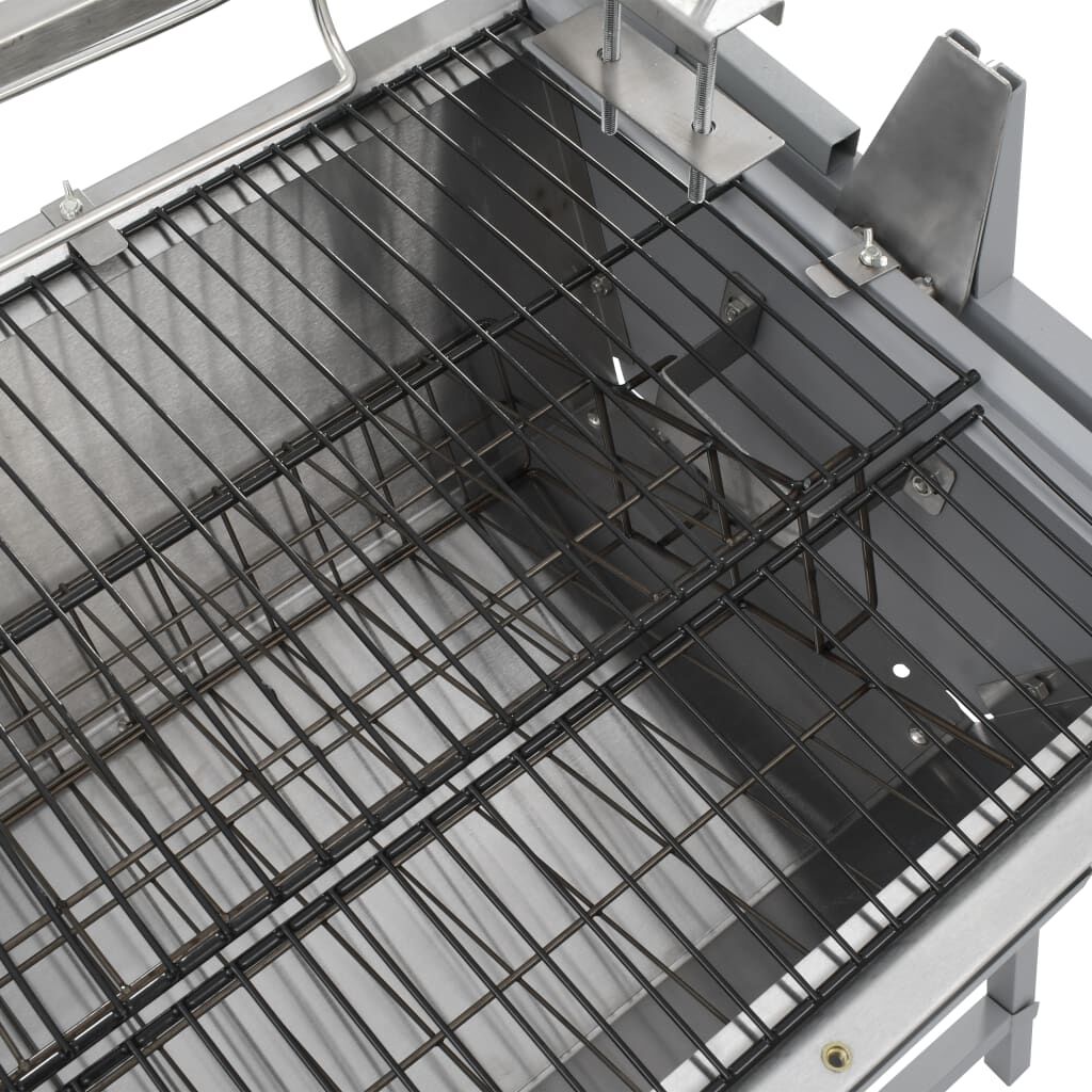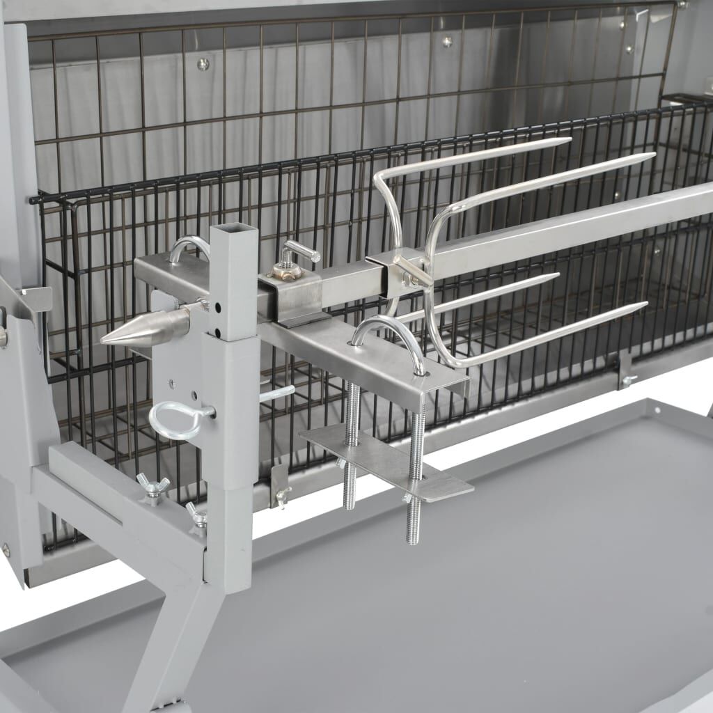 The rotisserie skewers are adjustable in length to better secure the meat. The height of the skewers is also adjustable. Thanks to the rust-proof iron meat pins, it is easy to clean.