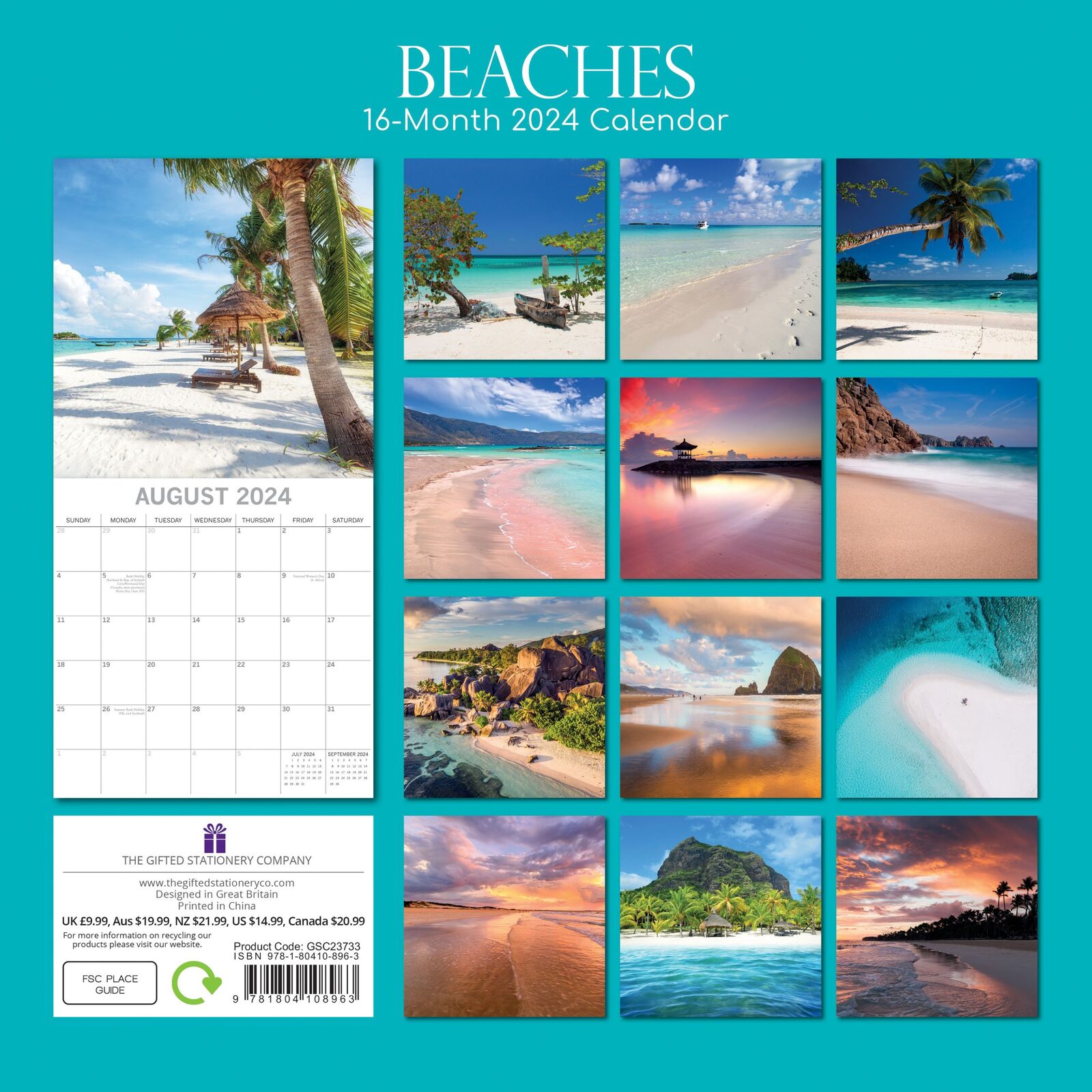 Beaches - 2024 Square Wall Calendar 16 Months Premium Planner Xmas New Year Gift