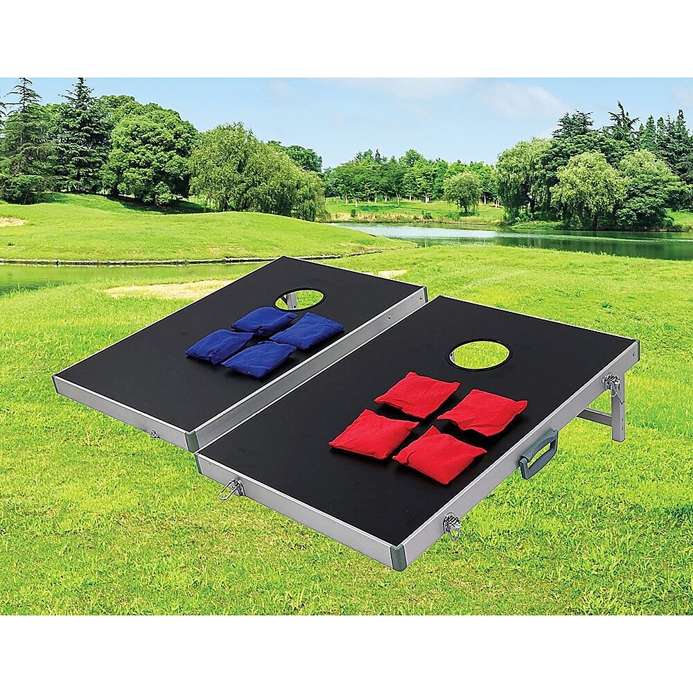$203.29This portable set of 2 bean bag toss platforms and bags comes with everything you need for hours of fun! The portable waterproof, UV-resistant platforms fold up to a height of 27.9cm each, and can fold back down for easy transportsimply use the attached carrying handles and you're good to go! Play against friends and family with the included 8 bean bags (4 red, 4 blue). This set is recommended for ages 13 years and older, as the bean bags are a choking hazard. Fun with family and friends is a toss away with the Corn Hole Bean Bag Toss Set by Best Choice Products!