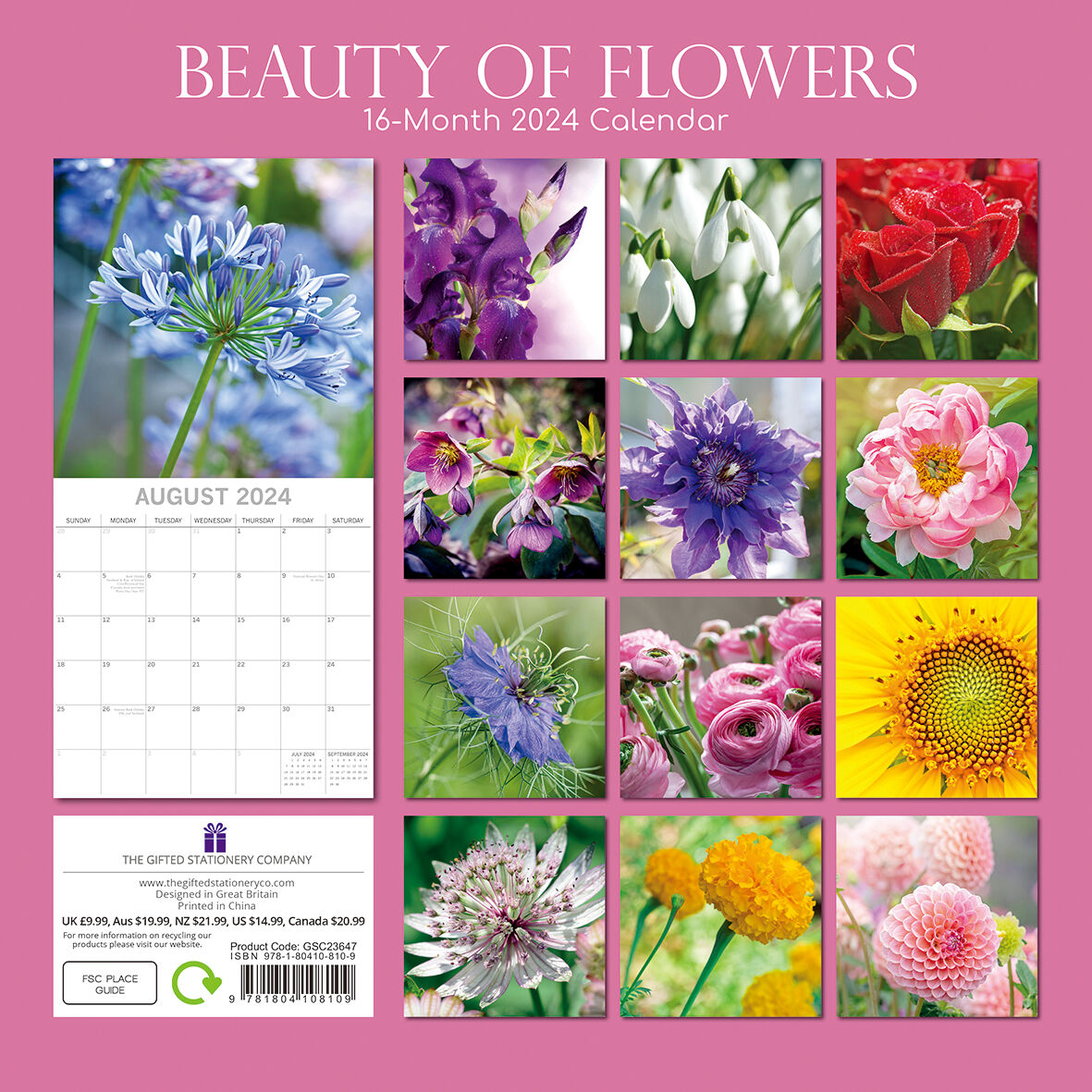Beauty of Flowers 2024 Square Wall Calendar 16Month Floral Planner New Year Gift