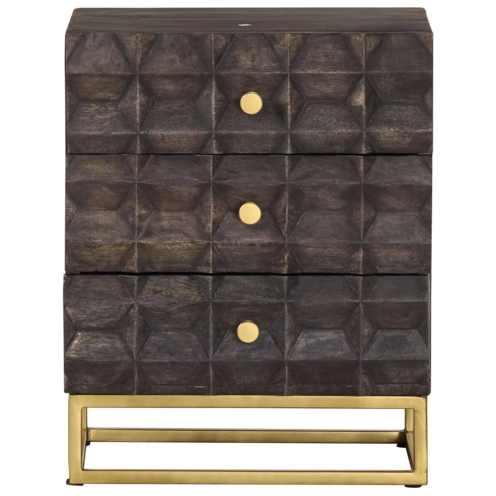 NOW $172.04With block design, this wooden table cabinet adds an industrial style to your living room. The bedside cabinet is made of solid mango wood, a tropical hardwood with the strength to bear the weight. It also stands the wear and tear of time, making it stable and durable. This storage cabinet features three drawers, providing ample storage space for your books and personal belongings well organised. The sturdy tabletop is ideal for displaying decorative objects, photo frames, and other decorative items. Additionally, it is also easy to clean with a damp cloth. Important note: Colours and grains may vary from piece to piece, making each piece unique. The delivery is random, ensuring the exclusivity and individuality of your product.