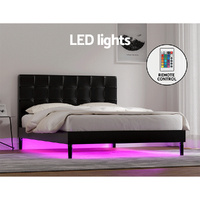 $278.99Sleep in style with our Artiss RAVI Bed Frame. Wrapped in premium PVC leather, the bed frame is aesthetically pleasing and extremely pleasant and smooth to the touch. The classic buttoned bedhead design is padded with thick high-density foam which makes it the perfect spot to sit back and relax, watch a movie, or read a book. This bed frame has premium heavy-duty metal fixings, strong centre support beams and solid powder-coated steel legs, so you don't have to worry about stability. The wide wooden slatted base provides a sturdy foundation and allows for proper ventilation for a fresh and dry mattress always. The built-in LED light strip allows you to create the perfect ambience with 16 LED colours, four flashing modes and a convenient remote control. The frame also features convenient USB and Type-C charging ports to ensure your devices are always ready to go. The bed frame is available in double, king and queen sizes and fits Australian standard-size mattresses. Experience the sweetest dreams with the Artiss RAVI Bed Frame today.