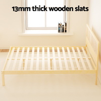 $223.24With the modern and stylish Rita Bed Frame, you can give your bedroom the perfect refresh. With its rattan bed head and smooth edges, this bed frame exudes elegance and sophistication. Crafted with a solid pinewood frame and reinforced construction, this bed frame is built to last. The sturdy wooden slats and middle support beam (for D and Q size only) provide excellent support for your mattress. The round pinewood legs add a touch of charm, while the high-quality metal fixings ensure durability. Easy to assemble and even easier to maintain, this bed frame is an ideal sleep solution for most modern Australian homes. Available in standard Australian mattress sizes, the Artiss Rita Bed Frame is the perfect choice for a comfortable and stylish sleep space.