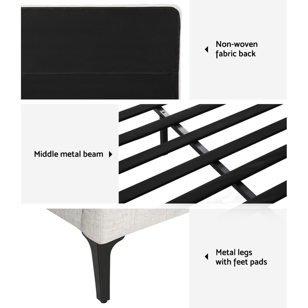 $342.23Add a touch of cosiness to your bedroom with our Artiss AMMY Bed Frame. Wrapped in premium faux linen fabric, the bed frame is aesthetically pleasing and extremely pleasant and smooth to the touch. The non-woven fabric is incredibly breathable to prevent moisture and bacteria build-up. The gorgeous cream shade enables you to style it in any bedroom, and it'll seamlessly blend into your home decor. The bed frame comes attached with a textured bed head and matching bed foot for a cohesive aesthetic. It has high-density foam padding, which makes it a cosy spot to sit back and relax, watch a movie, or read a book. Furthermore, the wide wooden slatted base provides a sturdy foundation and allows for proper ventilation for a fresh and dry mattress always. This bed frame has premium heavy-duty metal fixings and solid powder-coated steel legs, so you don't have to worry about stability. The bed frame is available in king and queen and fits Australian standard-size mattresses. Experience the sweetest dreams with the Artiss AMMY Bed Frame today.