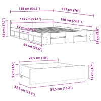 $252.89Add a modern touch to your bedroom with this bed frame with drawers! It makes a practical and decorative addition to your living space. Durable material: The bed frame is made of engineered wood. The engineered wood is of exceptional quality with a smooth surface and also features strength, stability, and resistance to moisture.Sturdy slats: The plywood slats provide good weight distribution, ensuring the mattress stays in place with every twist and turn of your body during sleep.Storage function: The included bed drawers and side compartments provide ample storage space for storing your essentials, keeping your room clean and tidy. Good to know:A mattress is not included with this bed. We do offer a various selection of mattresses. You can check our shop for a matching mattress.
