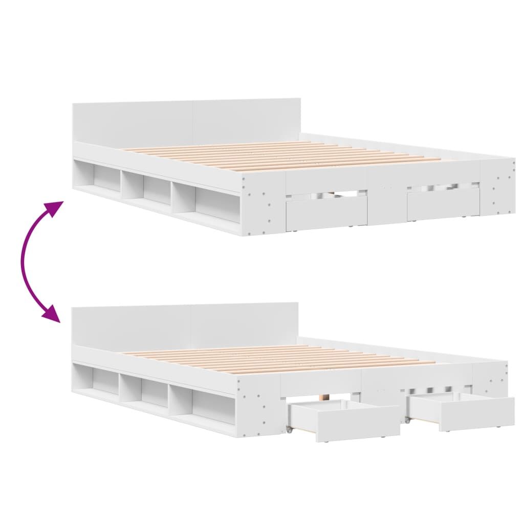 $268.19Add a modern touch to your bedroom with this bed frame with drawers! It makes a practical and decorative addition to your living space. Durable material: The bed frame is made of engineered wood. The engineered wood is of exceptional quality with a smooth surface and also features strength, stability, and resistance to moisture.Sturdy slats: The plywood slats provide good weight distribution, ensuring the mattress stays in place with every twist and turn of your body during sleep.Storage function: The included bed drawers and side compartments provide ample storage space for storing your essentials, keeping your room clean and tidy. Good to know:A mattress is not included with this bed. We do offer a various selection of mattresses. You can check our shop for a matching mattress.