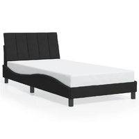 Get a better restful night's sleep from this bed frame with headboard! It makes a welcoming addition to any bedroom. Soft velvet: Velvet is a soft and comfortable fabric that feels nice against the skin.Plywood slats: The plywood slats provide good weight distribution, ensuring that the mattress stays in place with every twist and turn of your body during sleep.Excellent support: The headboard pillow is stuffed with foam for ultra-soft and optimal comfort, providing you with excellent back support while you're sitting up in bed to read or watch TV.Convenient design: The cushion headboard has a zipper for easy installation, and the hook-and-loop fasteners on the back can be used to secure the LED lights.Waved side design: The waved look of the bed frame is stylish and sophisticated, adding a modern and elegant touch to your decor, making it the focal point of your bedroom. Good to know:A mattress is not included with this bed. We do offer a various selection of mattresses. You can check our shop for a matching mattress.
