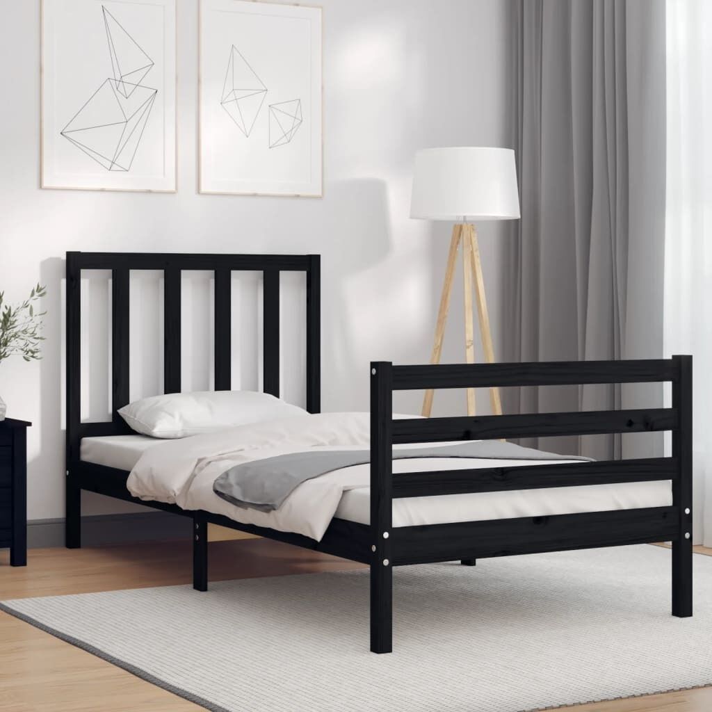 NOW $171.89Enjoy a good night's sleep in this wooden bed frame! It makes a practical and decorative addition to your interior. Durable material: Solid pine wood is a beautiful natural material. Pine wood has a straight grain, and the knots give the material its signature, rustic look. Made of solid pinewood, this bed is sturdy and durable.Plywood slats: The plywood slats provide good weight distribution, ensuring your mattress with much-needed support and breathability.Functional headboard and footboard: The headboard and footboard of the wooden bed can keep your mattress in place. Also, the headboard provides you with excellent back support when you sit up in bed to read or watch TV. Good to know:A mattress is not included with this bed. We do offer a various selection of mattresses. You can check our shop for a matching mattress.