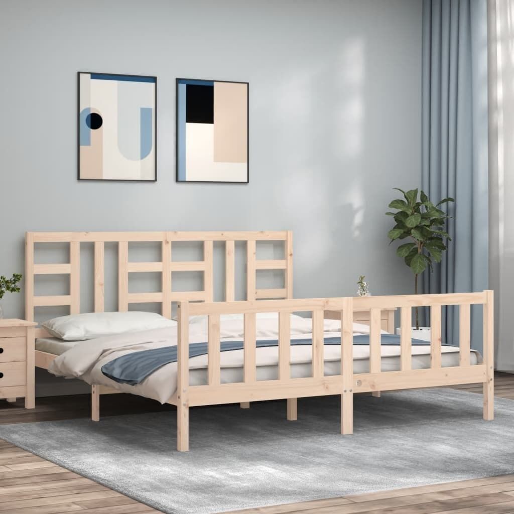 Bed Frame with Headboard Solid Wood
