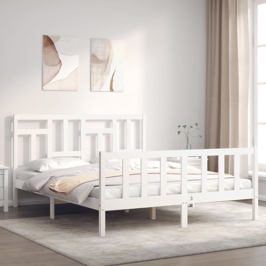 NOW $173.69Enjoy a good night's sleep in this wooden bed frame! It makes a practical and decorative addition to your interior. Durable material: Solid pine wood is a beautiful natural material. Pine wood has a straight grain, and the knots give the material its signature, rustic look. Made of solid pinewood, this bed is sturdy and durable.Plywood slats: The plywood slats provide good weight distribution, ensuring your mattress with much-needed support and breathability.Functional headboard and footboard: The headboard and footboard of the wooden bed can keep your mattress in place. Also, the headboard provides you with excellent back support when you sit up in bed to read or watch TV. Good to know:A mattress is not included with this bed. We do offer a various selection of mattresses. You can check our shop for a matching mattress.
