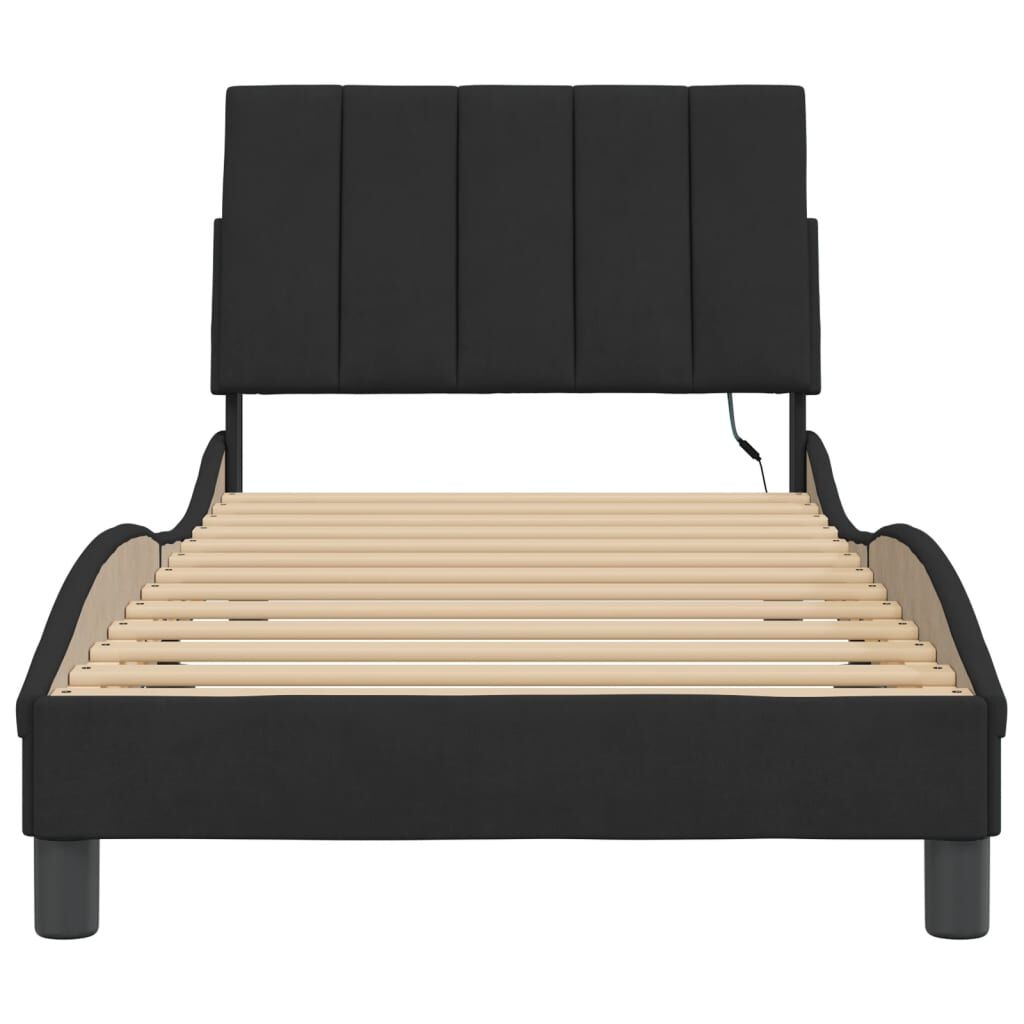 $200.87Get a better restful night's sleep from this bed frame with LED lights! It makes a welcoming addition to any bedroom. Soft velvet: Velvet is a soft and comfortable fabric that feels nice against the skin.Plywood slats: The plywood slats provide good weight distribution, ensuring that the mattress stays in place with every twist and turn of your body during sleep.Excellent support: The bed header provides you with excellent back support while you're sitting up in bed to read or watch TV.Colourful LED strip: Bring playfulness into darkness with colourful LED lights! The hook and loop fasteners on the back of the headboard cushion can be used to secure the LED lights.Waved side design: The waved look of the bed frame is stylish and sophisticated, adding a modern and elegant touch to your decor, making it the focal point of your bedroom. Good to know:A mattress is not included with this bed. We do offer a various selection of mattresses. You can check our shop for a matching mattress.The product has a USB connector that requires a certified 5V USB power source (not included).