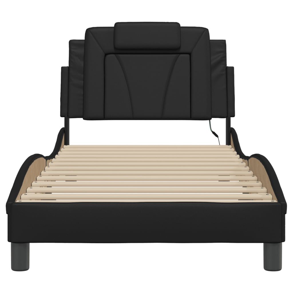 $229.70Get a better restful night's sleep from this bed frame with LED lights! It makes a welcoming addition to any bedroom. Durable faux leather: Premium faux leather is a highly durable material. It is resistant to stain, making it easy to clean with a damp cloth. The smooth surface also gives a luxurious look and the beauty of real leather.Plywood slats: The plywood slats provide good weight distribution, ensuring that the mattress stays in place with every twist and turn of your body during sleep. Excellent support: The headboard pillow is stuffed with foam for ultra-soft and optimal comfort, providing you with excellent back support while you're sitting up in bed to read or watch TV. Colourful LED strip: Bring playfulness into darkness with colourful LED lights! The hook and loop fasteners on the back of the headboard cushion can be used to secure the LED lights. Waved side design: The waved look of the bed frame is stylish and sophisticated, adding a modern and elegant touch to your decor, making it the focal point of your bedroom. Good to know:A mattress is not included with this bed. We do offer a various selection of mattresses. You can check our shop for a matching mattress.The product has a USB connector that requires a certified 5V USB power source (not included).