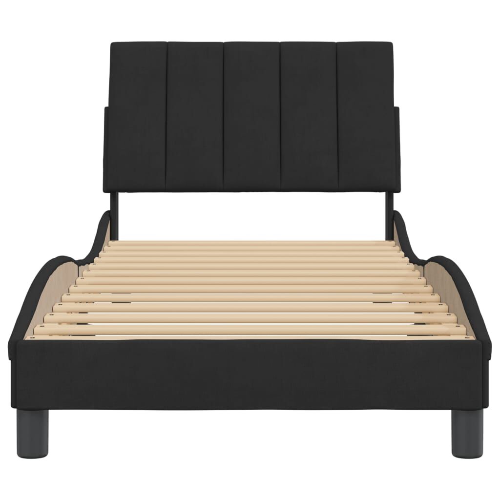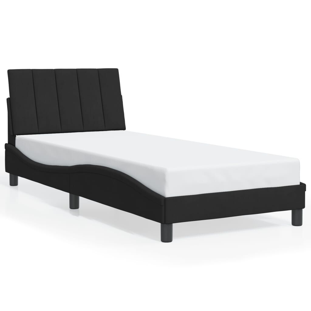 $185.99Get a better restful night's sleep from this bed frame with headboard! It makes a welcoming addition to any bedroom. Soft velvet: Velvet is a soft and comfortable fabric that feels nice against the skin.Plywood slats: The plywood slats provide good weight distribution, ensuring that the mattress stays in place with every twist and turn of your body during sleep.Excellent support: The headboard pillow is stuffed with foam for ultra-soft and optimal comfort, providing you with excellent back support while you're sitting up in bed to read or watch TV.Convenient design: The cushion headboard has a zipper for easy installation, and the hook-and-loop fasteners on the back can be used to secure the LED lights.Waved side design: The waved look of the bed frame is stylish and sophisticated, adding a modern and elegant touch to your decor, making it the focal point of your bedroom. Good to know:A mattress is not included with this bed. We do offer a various selection of mattresses. You can check our shop for a matching mattress.