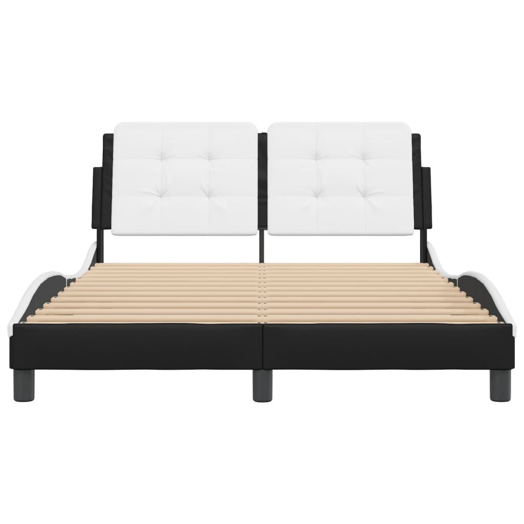 $224.12Get a better restful night's sleep from this bed frame with headboard! It makes a welcoming addition to any bedroom. Durable faux leather: Premium faux leather is a highly durable material. It is resistant to stain, making it easy to clean with a damp cloth. The smooth surface also gives a luxurious look and the beauty of real leather.Plywood slats: The plywood slats provide good weight distribution, ensuring that the mattress stays in place with every twist and turn of your body during sleep.Excellent support: The headboard pillow is stuffed with foam for ultra-soft and optimal comfort, providing you with excellent back support while you're sitting up in bed to read or watch TV.Convenient design: The cushion headboard has a zipper for easy installation, and the hook-and-loop fasteners on the back can be used to secure the LED lights.Waved side design: The waved look of the bed frame is stylish and sophisticated, adding a modern and elegant touch to your decor, making it the focal point of your bedroom. Good to know:A mattress is not included with this bed. We do offer a various selection of mattresses. You can check our shop for a matching mattress.