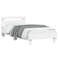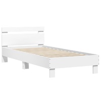 $157.12Get a better restful night's sleep from this bed frame with headboard and LED lights! It makes a welcoming addition to any bedroom. Durable material: The engineered wood is of exceptional quality with smooth surface and also features strength, stability and resistance to moisture.RGB LED lights: The bed frame is equipped with vibrant RGB LED lights. With various customisable menus, you can effortlessly change the colour of the lights and even set them to adjust automatically. These LED lights not only enhance the contemporary look of the bed base but also add to its trendy appeal.Excellent support: The bed headboard provides you with excellent back support while you're sitting up in bed to read or watch TV.Sturdy slats: The plywood slats provide good weight distribution, ensuring that the mattress stays in place with every twist and turn of your body during sleep. Good to know:A mattress is not included with this bed. We do offer a various selection of mattresses. You can check our shop for a matching mattress.The product has a USB connector that requires a certified 5V USB power source (not included).