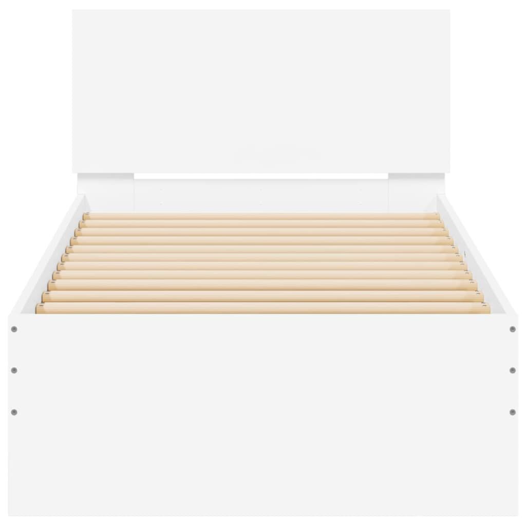 $133.87Get a better restful night's sleep from this bed frame with headboard and LED lights! It makes a welcoming addition to any bedroom. Durable material: The engineered wood is of exceptional quality with smooth surface and also features strength, stability and resistance to moisture.RGB LED lights: The bed frame is equipped with vibrant RGB LED lights. With various customisable menus, you can effortlessly change the colour of the lights and even set them to adjust automatically. These LED lights not only enhance the contemporary look of the bed base but also add to its trendy appeal.Excellent support: The bed headboard provides you with excellent back support while you're sitting up in bed to read or watch TV.Sturdy slats: The plywood slats provide good weight distribution, ensuring that the mattress stays in place with every twist and turn of your body during sleep. Good to know:A mattress is not included with this bed. We do offer a various selection of mattresses. You can check our shop for a matching mattress.The product has a USB connector that requires a certified 5V USB power source (not included).