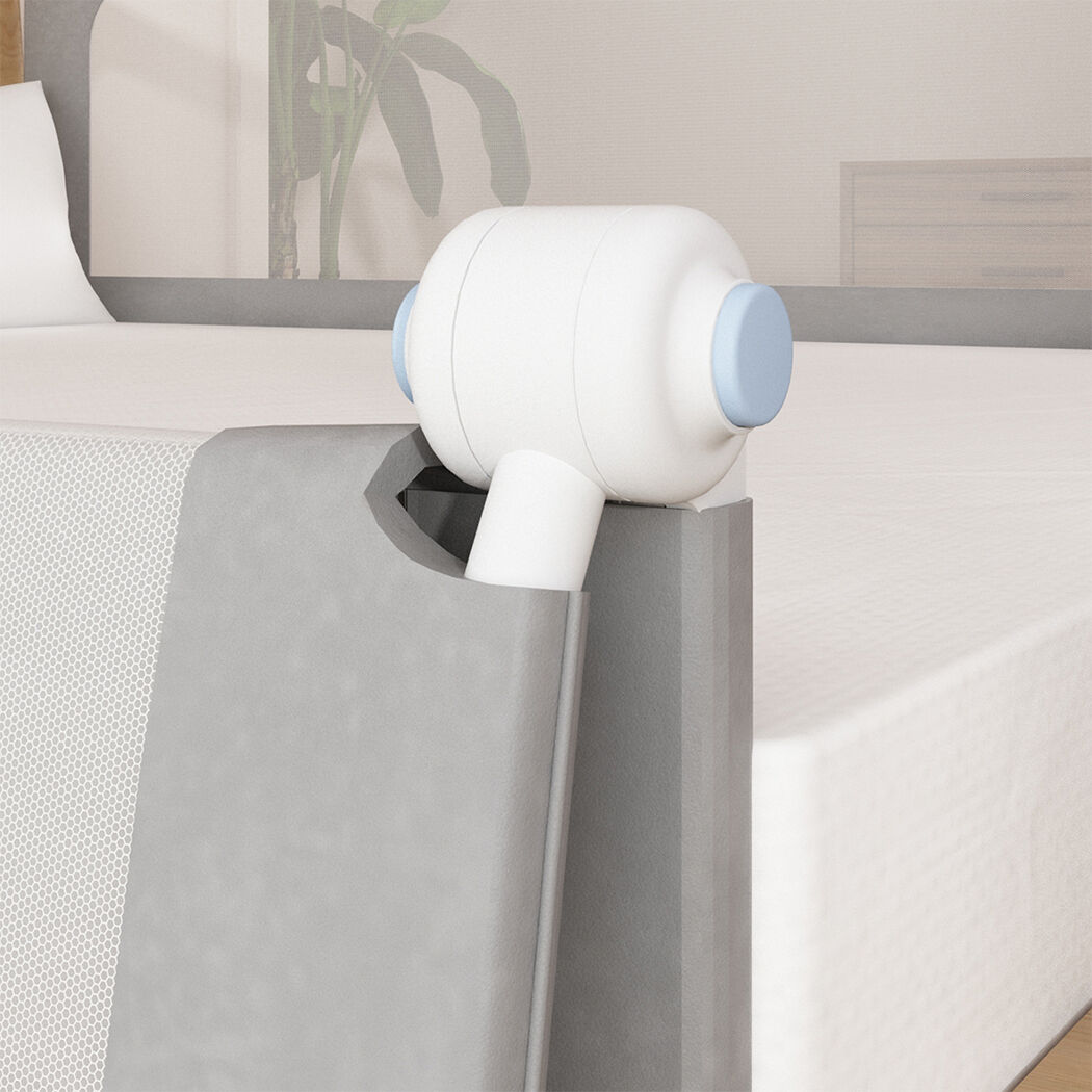 Every aspect of your bed side rail is designed with children in mind. We understand that durability and safety are your concerns. Each bar locks safely and the fabric is barrier has no holes for fingers to get into.