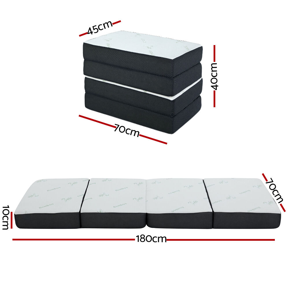 $96.71A couch by day, a bed by night. Convertible in use, our Giselle Bedding Folding Foam Mattress is great to have in any home. It is foldable and can easily be stored away or used as an extra couch during the day. Then when the sun begins to set, you can let it unfold to become a comfortable instant bed for sleepovers or unexpected guests. The mattress would also be perfect for places such as tiny city apartments and residential colleges and where there is limited space for large sofas and beds. Or to feel at home while you are out and about, such as during camping and road trips. And the mattress is not only versatile, but reliable. Its cover with bamboo fabric top and air mesh fabric sides and bottom feels absolutely heavenly and is breathable to keep you dry and comfortable throughout the night, while the high-density foam provides adequate support all round. Best of all, the cover is removable and washable for easy cleaning and maintenance.