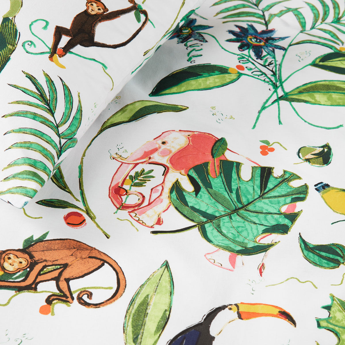 $90.89The Crazy Jungle Multi Cotton Quilt Cover Set by Bedding House is a cheerful and playful jungle duvet cover. On the cover tropical birds, monkeys, leopards and elephants are depicted between leaves and flowers printed in white, pink, red, brown, green, blue, teal, yellow, and orange colour tones. It is made from soft touch and quality 100% Cotton fabric.