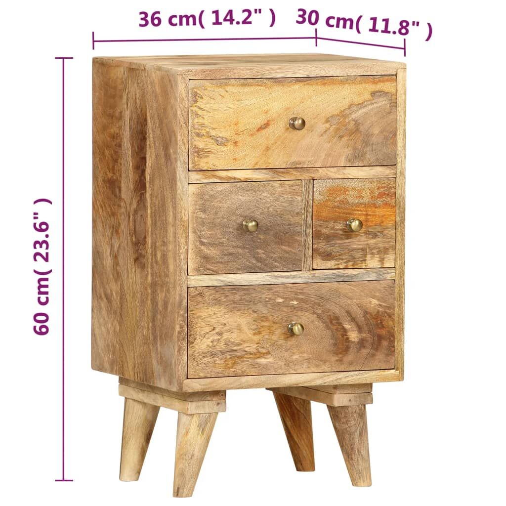 NOW $211.10Introduce an air of rustic charm to your interior with our elegant wooden bedside table! It can also be used as a nightstand, bed cabinet, bed drawer cabinet etc. Made of solid mango wood, the nightstand has been given a beautiful finish by polishing and lacquering, making it exude a refined look. Mango wood is a dense and robust hardwood which has beautiful brown or golden streaks and contours on its surface. Additionally, the 4 drawers provide space for keeping smaller items organised and within reach. Important note: The exquisite craftsmanship and the beautiful solid mango wood grains make every piece of furniture unique and slightly different from the next; the delivery is random. It is easy to assemble. Warning: In order to prevent overturning, this product must be used with the wall attachment device provided.