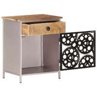 $50.39This wooden bedside cabinet is specially designed for your bedroom. The nightstand is made of rough mango wood, a tropical hardwood with the strength to bear the weight. It also stands the wear and tear of time, making it stable and durable. The craftsmanship and the beautiful wood grains make every piece of furniture unique and slightly different from the next. This bedside table also features a door and a drawer, providing ample storage space to keep your essential items organised and within reach. Additionally, the door is made of real bicycle chain wheels, which is stylish and unique. Important note: Colours and grains may vary from piece to piece, making each piece unique. The delivery is random, ensuring the exclusivity and individuality of your product.