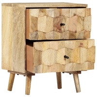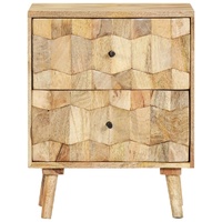 NOW $125.54Bring the luxury of mid-century inspired design into your interior with our beautiful wooden bedside cabinet! Made of solid mango wood, the nightstand has been given a beautiful finish by polishing and lacquering, making it exude a refined look. Mango wood is a dense and robust hardwood which has beautiful brown or golden streaks and contours on its surface. Additionally, the two drawers with craved pattern adds to the bedside cabinet's beauty while providing ample storage space for keeping your smaller items organised and within reach. The bed drawer cabinet is easy to assemble and clean with a damp cloth. Upgrade your interior to the next level with our elegant nightstand!