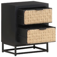 $134.09This industrial-style wooden bedside cabinet makes a great addition to your interior. It can also be used as a nightstand or side table. The side cabinet is made of solid mango wood, a tropical hardwood with the strength to bear the weight. It also stands the wear and tear of time, making it stable and durable. The drawer is made of natural jute and the iron base also adds extra stability. The nightstand has a sturdy top to place a bedside lamp, alarm clock or anything else you might need. This bedside table features two drawers providing ample space for keeping smaller items organised and within reach. Important note: Colours and grains vary from piece to piece, making each piece unique. The delivery is random, ensuring the exclusivity and individuality of your product.