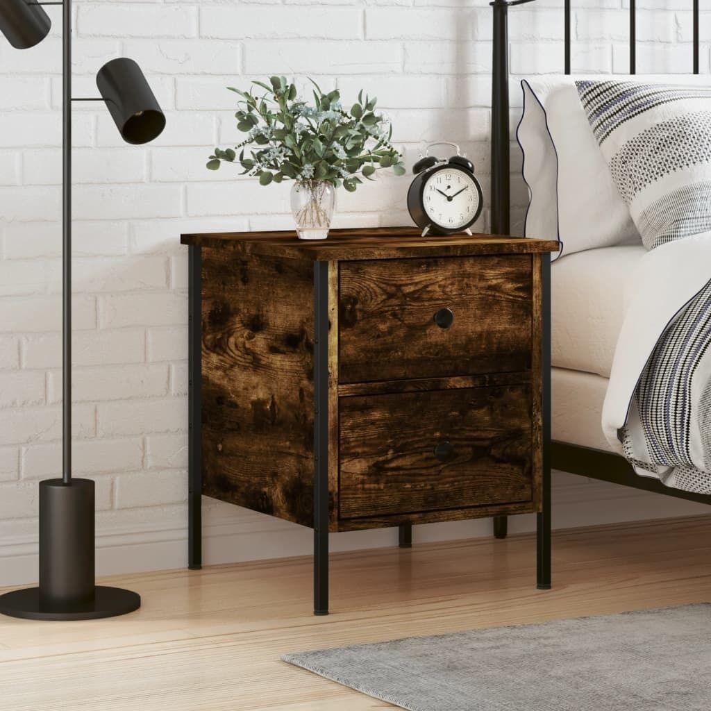 $59.39This bedside cabinet with an industrial style makes a timeless addition to your interior decor. Durable material: The engineered wood is of exceptional quality with smooth surface and also features strength, stability and resistance to moisture.Sturdy frame: The iron frame of the bedside table ensures sturdiness and stability.Ample storage space: Designed with 2 drawers, the side table offers ample storage space for keeping your various daily essentials well-organised and within easy reach.Adjustable feet: The side cabinet is equipped with 4 adjustable feet that can protect your floor from scratches and keep it stable on the uneven floor.Displaying function: You can place your favourite photos, decorations, or flowers on top of the nightstand to enrich your life. Warning:To prevent it being overturned, this product must be used with the provided wall attachment device.