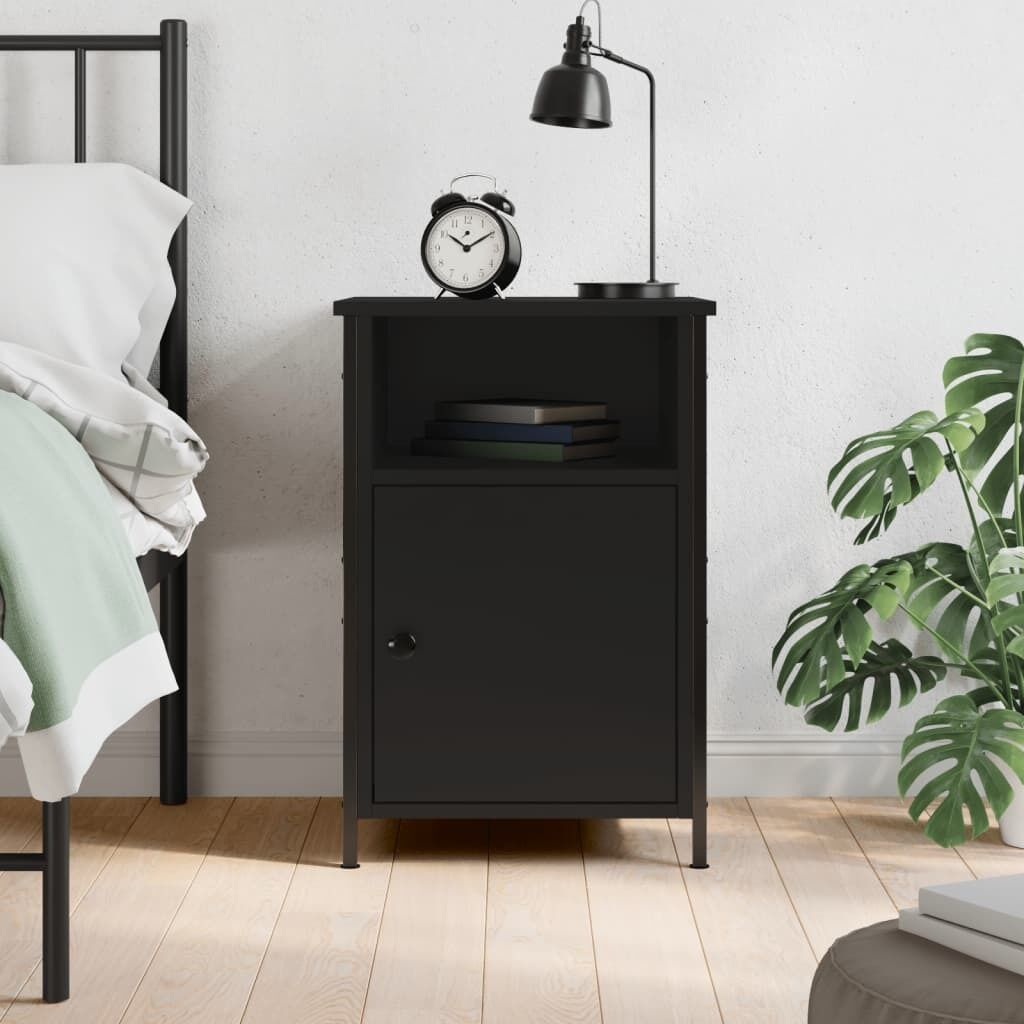 $62.09This bedside cabinet with an elegant design makes a timeless addition to your interior decor. Durable material: The engineered wood is of exceptional quality with a smooth surface and features strength, stability and resistance to moisture.Ample storage space: The cabinet offers ample storage space for keeping your various daily essentials well organised and within easy reach.Adjustable screw: You can adjust the height of the black screw to keep the nightstand stable on uneven ground.Sturdy frame: The iron frames ensure the sturdiness and stability of the side cabinet.Displaying function: You can also place your favourite photos, decorations or flowers on top of the bedside table to enrich your life. Warning:To prevent it being overturned, this product must be used with the provided wall attachment device.