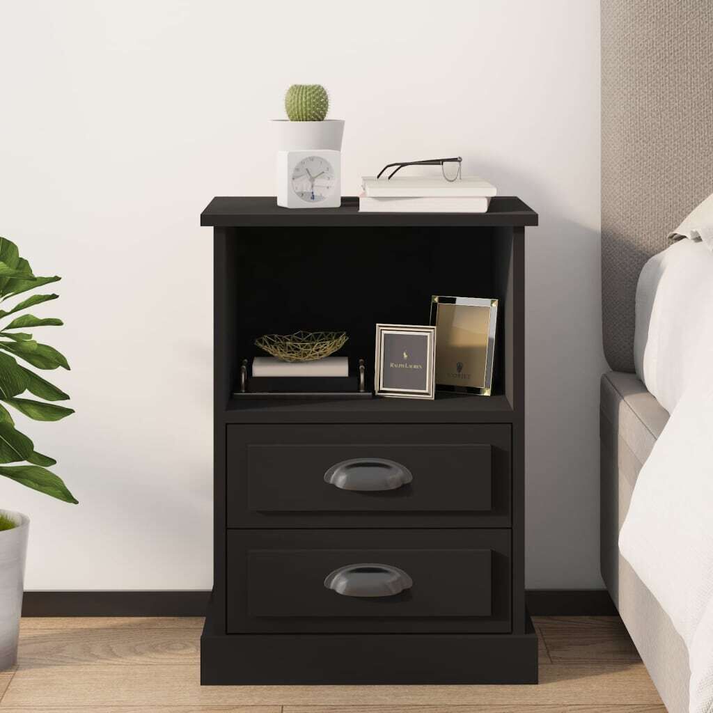 $71.99This bedside cabinet with an elegant design makes a timeless addition to your interior decor. Durable material: The engineered wood is of exceptional quality with smooth surface and also features strength, stability and resistance to moisture.Ample storage space: The bedside table is designed with 2 drawers and 1 open compartment to keep things organised and within easy reach.Stable and sturdy table top: The top of the side cabinet is perfect for displaying your decorative items, picture frames, and potted plants. Warning:To prevent it being overturned, this product must be used with the provided wall attachment device.