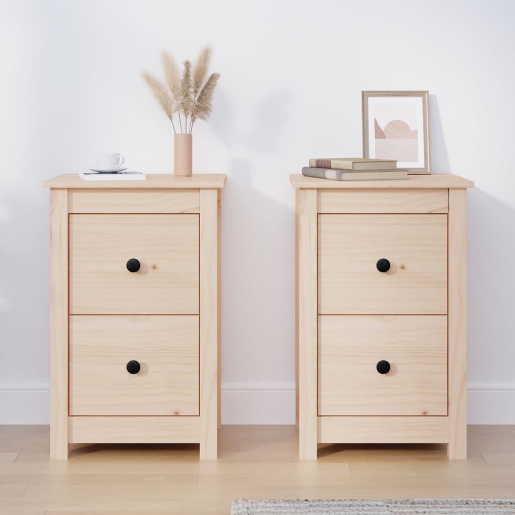 $180.89These classic wooden bedside cabinets featuring elegant design make a timeless addition to your interior decor. Solid pine wood: These side cabinets are made of solid pine wood. Solid pine wood is a beautiful natural material. Pine wood has a straight grain, and the knots give the material its signature, rustic look.Ample storage space: These bedside tables feature spacious drawers, which provide ample storage space for keeping your small items well organised and within reach.Sturdy top: The sturdy top of the side cabinet is ideal for displaying decorative objects, photo frames, or potted plants. Warning:In order to prevent overturning, this product must be used with the wall attachment device provided. Note:Each product comes with an assembly manual in the box for easy assembly.