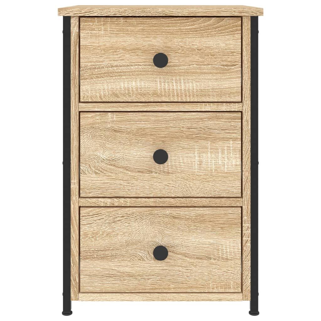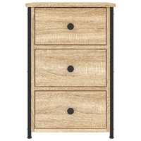 $151.19These bedside cabinets with an industrial style make a timeless addition to your interior decor. Durable material: The engineered wood is of exceptional quality with smooth surface and also features strength, stability and resistance to moisture.Sturdy frame: The iron frame of the bedside table ensures sturdiness and stability.Ample storage space: Designed with 3 drawers, the side table offers ample storage space for keeping your various daily essentials well-organised and within easy reach.Adjustable feet: The side cabinet is equipped with 4 adjustable feet that can protect your floor from scratches and keep it stable on the uneven floor.Displaying function: You can place your favourite photos, decorations, or flowers on top of the nightstand to enrich your life. Warning:To prevent it being overturned, this product must be used with the provided wall attachment device.