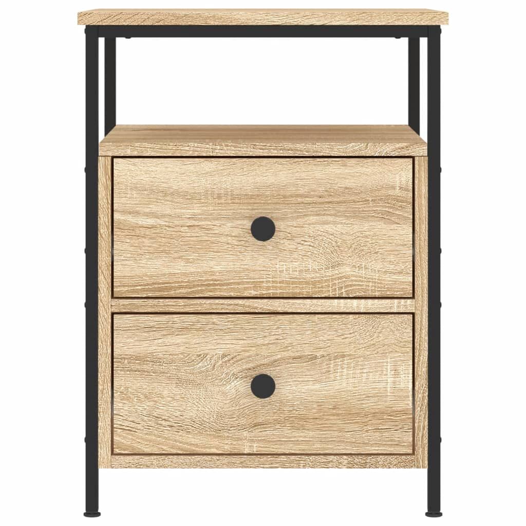 $153.89These bedside cabinets with an industrial style make a timeless addition to your interior decor. Durable material: The engineered wood is of exceptional quality with smooth surface and also features strength, stability and resistance to moisture.Sturdy frame: The iron frame of the bedside table ensures sturdiness and stability.Ample storage space: The side table offers ample storage space for keeping your various daily essentials well-organised and within easy reach.Adjustable feet: The side cabinet is equipped with 4 adjustable feet that can protect your floor from scratches and keep it stable on the uneven floor.Displaying function: You can place your favourite photos, decorations, or flowers on top of the nightstand to enrich your life. Warning:To prevent it being overturned, this product must be used with the provided wall attachment device.