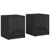 $74.69These trendy bedside cabinets featuring an elegant design make a timeless addition to your interior decor. Durable material: The engineered wood is of exceptional quality with smooth surface and also features strength, stability and resistance to moisture.Ample storage space: These bedside tables offer handy storage space for keeping your magazines, remote controls and small items well-organised and within reach.Stable top: The side cabinets feature a stable top that can be used to place table lamps, books, etc.Practical glass doors: Keep your space clutter-free by hiding small essentials behind the doors of bedroom furniture. In addition, these glass doors allow you to see inside the bed side cabinets to display items beautifully.