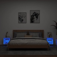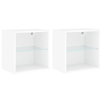 Featuring a trendy yet practical design, these bedside cabinets with LED lights will become a focal point of your room. Durable material: The engineered wood is of exceptional quality with smooth surface and also features strength, stability and resistance to moisture.Ample storage space: These bedside tables offer handy storage space for keeping your magazines, remote controls and small items well organised and within reach.RGB LED lights: These bed side cabinets feature RGB LED lights, which have different menus to change the colour of lights and let the colour adjust automatically.Displaying function: The sturdy top of the cabinets is ideal for displaying decorative objects, photo frames, or potted plants.Wall-mounted design: This bedroom furniture can be wall-mounted to add extra storage space. That way, you can maximise your floor space and keep the area clean. Good to know:Screws and plugs for inside the wall are not included. We advise to find and use screws and plugs suitable specifically for your walls. If you're not sure, you can consult with a professional. Please read and follow each step of the instructions.The product has a USB connector that requires a certified 5V USB power source (not included).